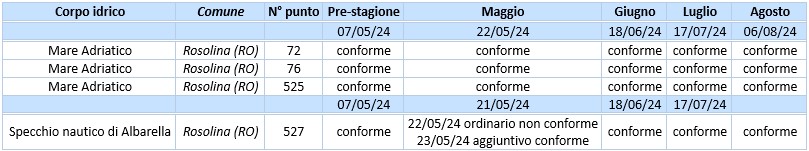 Mare Adriatico | Rosolina (RO) | 70 | Rosolina mare-piazza S. Giorgio | IT005029040004 | 1355 | eccellente |