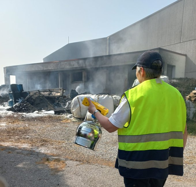 All’arrivo sul posto dei tecnici Arpav l’incendio presso la struttura era in fase di avanzato spegnimento; sono stati effettuati due campioni di aria ambiente con canister per la ricerca dei composti organici volatili e un campione con pompa ad alto volume per la ricerca di microinquinanti organici in direzione di ricaduta.