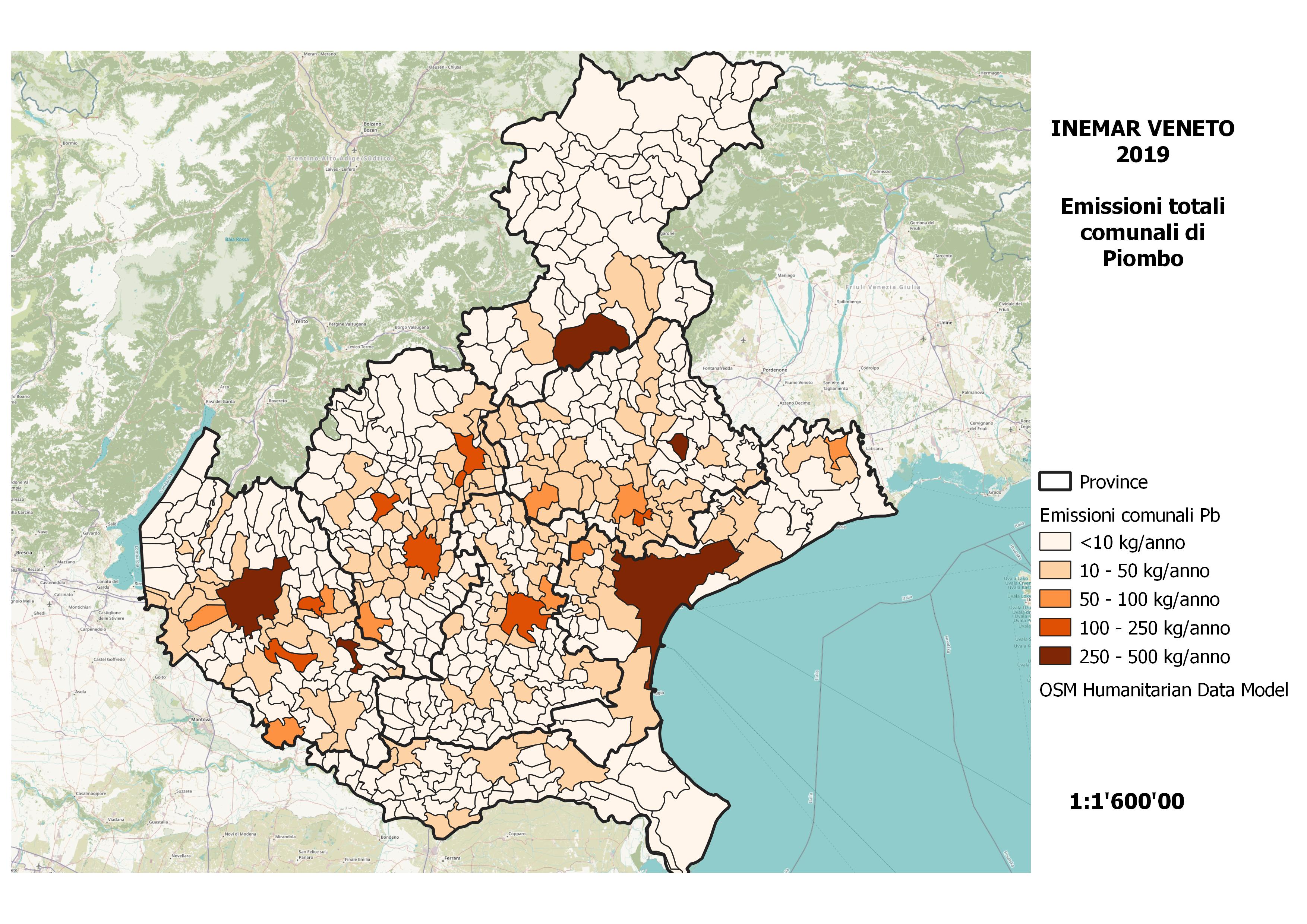 I macrosettori che contribuiscono maggiormente all'emissione di piombo (Pb) in Veneto sono il M07 – Trasporto su strada (42%), seguito dal M03 – Combustione nell'industria e dal M04 – Processi produttivi (rispettivamente 33% e 13% del totale regionale), mentre il M02 – Combustione non industriale contribuisce con il 7%.