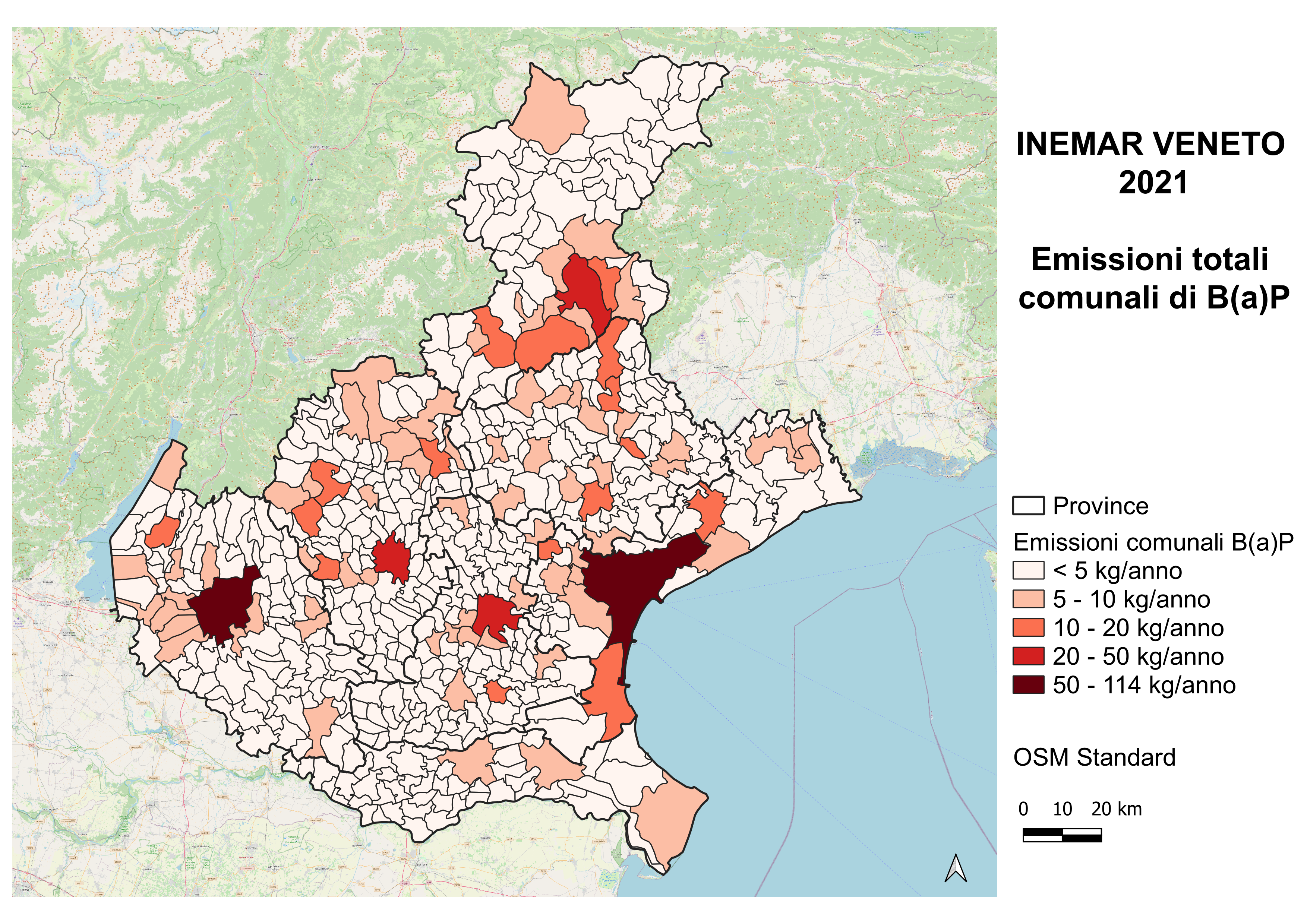 Mappe regionali delle emissioni annuali a livello comunale di arsenico (As), cadmio (Cd), nichel (Ni), piombo (Pb) e benzo(a)pirene (BaP), basate su INEMAR Veneto 2021