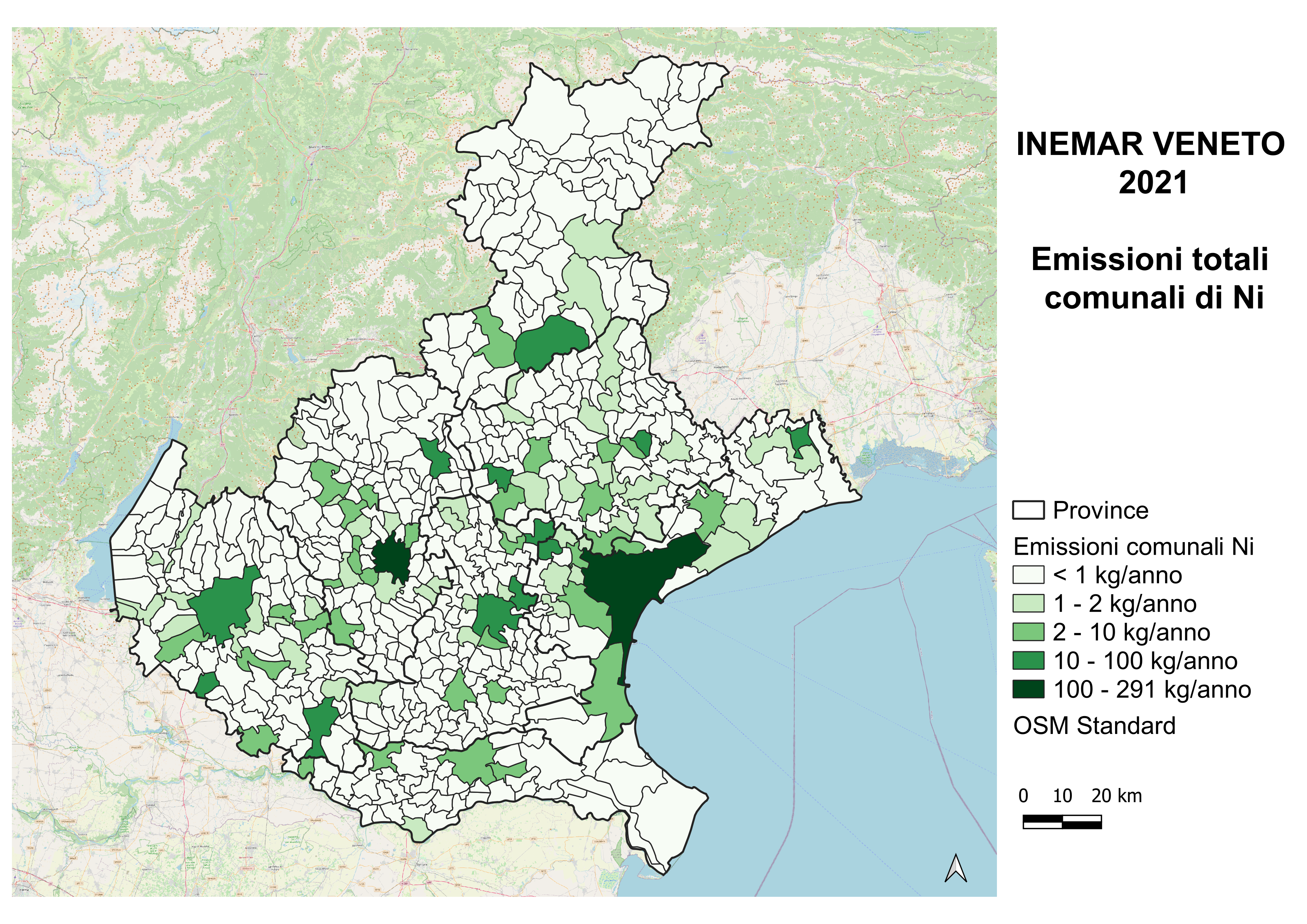 Dati e grafico fonti emissive regionali Ni INEMARVeneto 2021