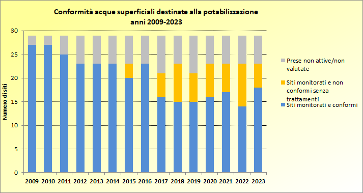 Conformità delle acque superficiali destinate alla potabilizzazione nel Veneto. Anni 2009-2023