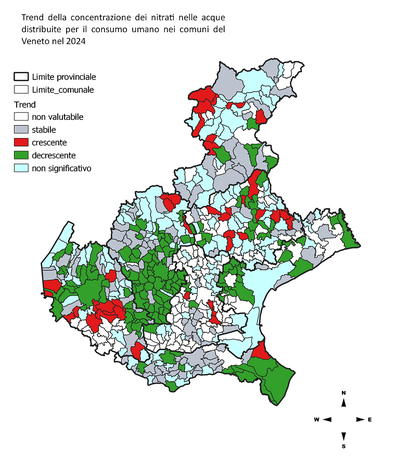 Fig. 2 - Mappa trend concentrazione nitrati anni 2007 - 2024