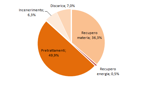- 10% pretrattamenti finalizzati allo smaltimento finale (chimico-fisico, biologico, o condizionamenti preliminari quali miscelazione, accorpamenti, inertizzazione;