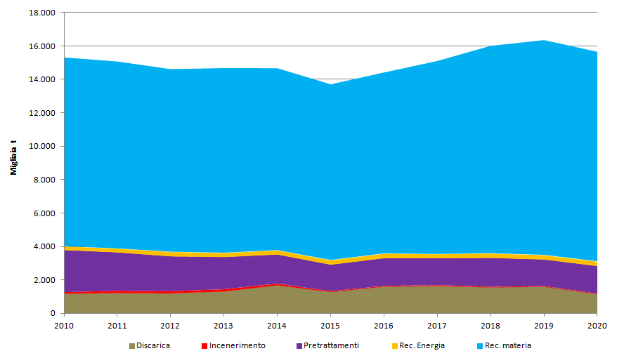 - il recupero di energia e l’incenerimento risultano attività residuali pari rispettivamente al 3% e 0,02%.