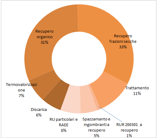- un elevato quantitativo di rifiuti avviati a recupero di materia (organico, frazioni secche recuperabili - carta, vetro, plastica, legno, RAEE, spazzamento e ingombranti);