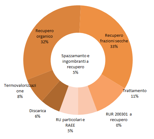 Le modalità di recupero o smaltimento a cui vengono avviati i rifiuti urbani una volta raccolti sono fondamentali nel determinare la qualità e l’efficacia dell’intera gestione dei rifiuti. Risulta importante monitorare in che percentuale le diverse categorie di rifiuti sono recuperate e soprattutto a quanto ammonta la percentuale di rifiuti avviata direttamente a smaltimento.