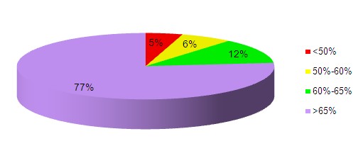 Percentuale di Comuni veneti per classe di raccolta differenziata, anno 2012