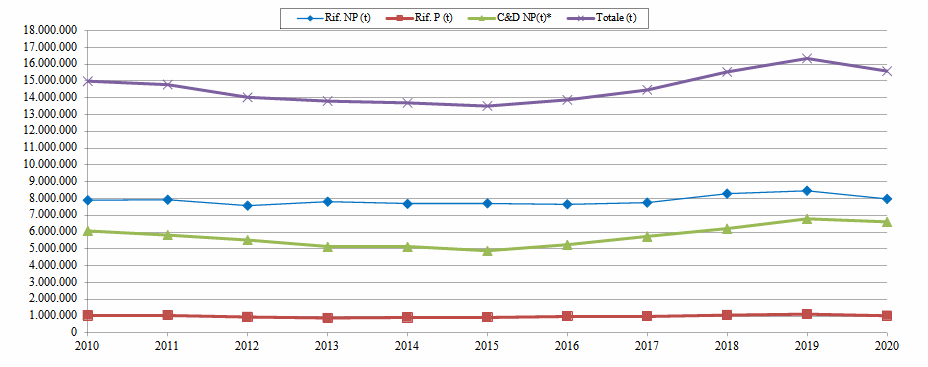 - 7,9 milioni di t di rifiuti non pericolosi, esclusi i rifiuti da C&D