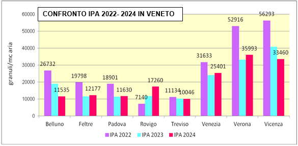 La conoscenza delle concentrazioni giornaliere dei pollini aerodispersi delle principali e più diffuse famiglie allergizzanti è un importante strumento conoscitivo nella prevenzione, controllo clinico, terapia e applicazioni scientifiche legate alle pollinosi. Una sintesi utile è l’Indice Pollinico Allergenico, ottenuto dalla somma delle concentrazioni giornaliere delle principali e più diffuse famiglie allergizzanti presenti sul territorio nazionale e nel territorio veneto.