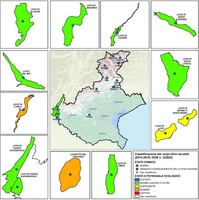 Stato chimico e lo stato o il potenziale ecologico dei corpi idrici lacustri del Veneto