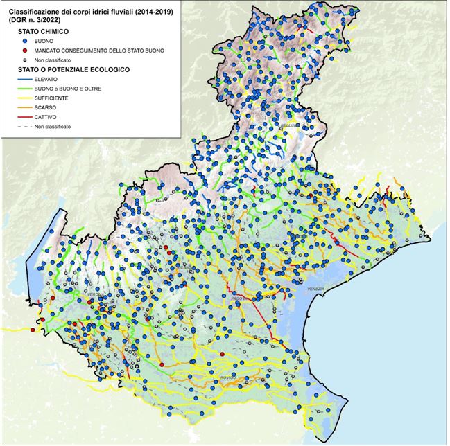 06-12-2022 09:50Stato chimico e lo stato o il potenziale ecologico dei corpi idrici fluviali del Veneto