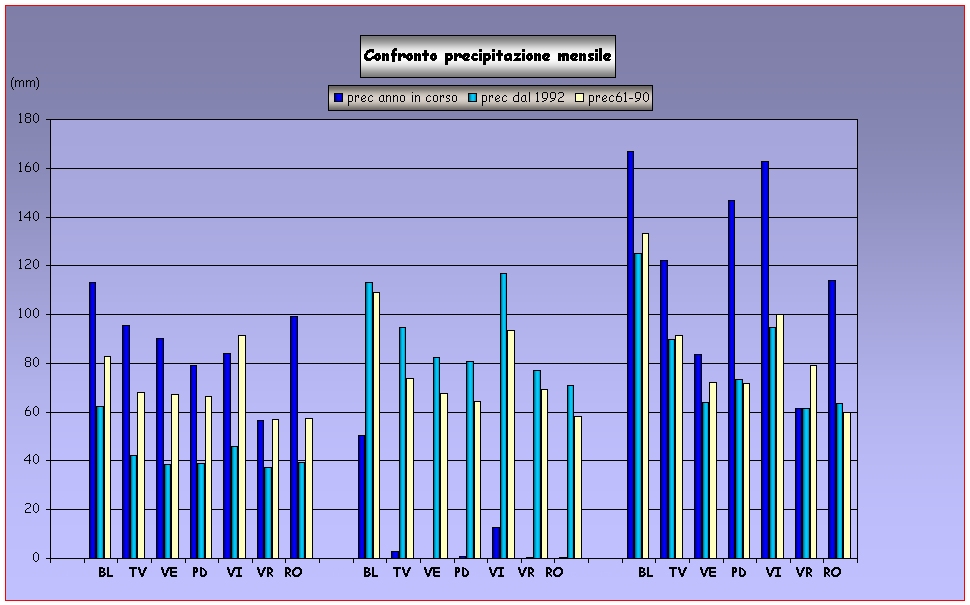 Istogrammi di precipitazione mensile in alcune stazioni rappresentative dei capoluoghi di provincia nel periodo primaverile 2007.
