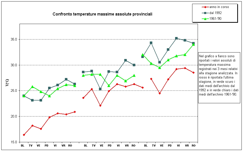 temperature massime assolute provinciali primavera 2006