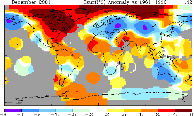 Anomalia termica per il mese di dicembre 2001 [fonte: NASA]