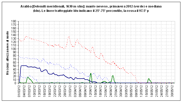 Analisi statistica dell'andamento del manto nevoso ad Arabba nel periodo primaverile 2012, come deducibile dal Mod1