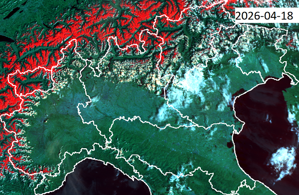Commento: Ecco come appare l’Italia vista da satellite il 18 aprile 2026. L'attività convettiva inzia a nascondere le cime delle montagne, specie nella fascia prealpina. Rispetto alle immagini pubblicate recentemente, si può notare come la neve (color rosso) sia confinata ormai a quote più elevate.