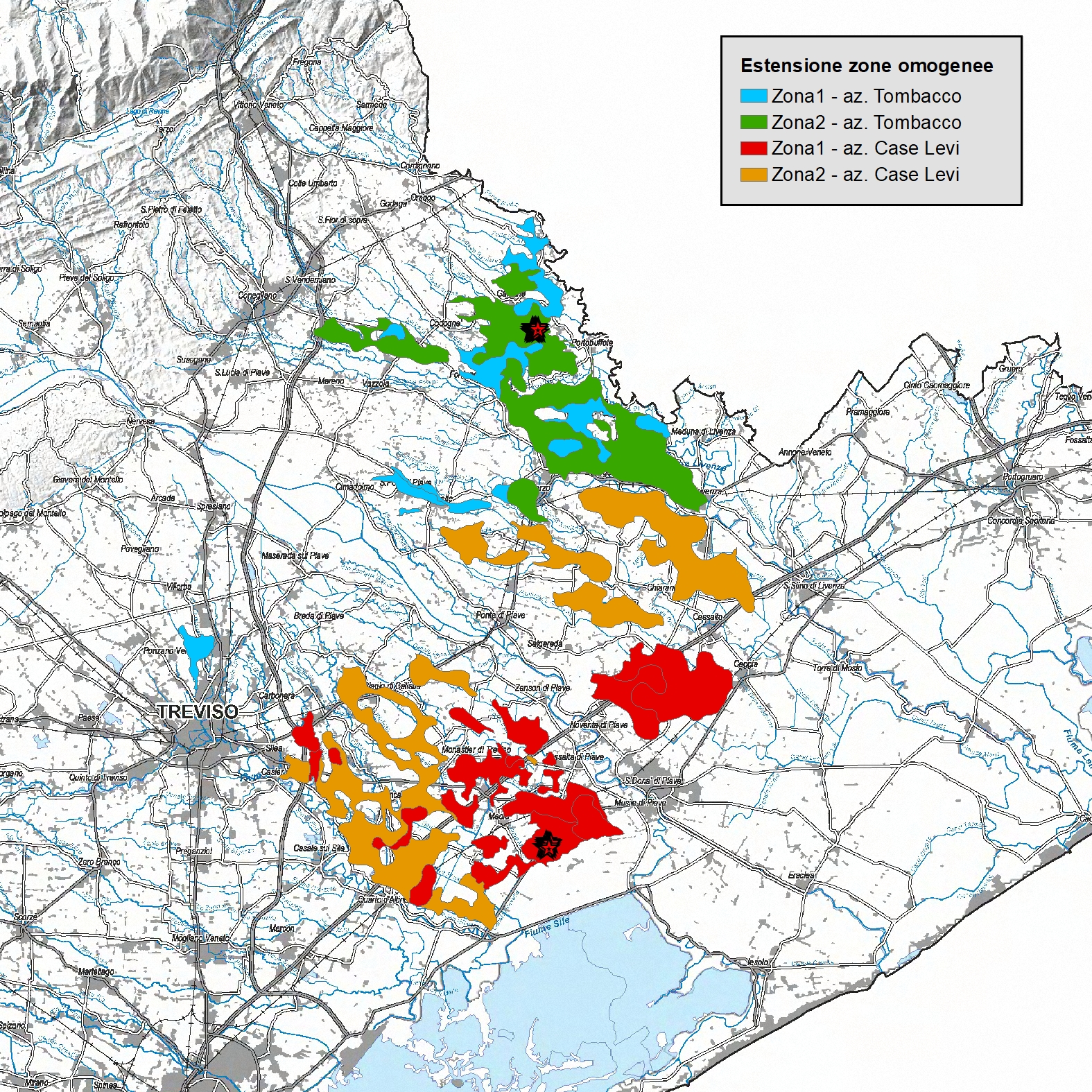 Per fornire uno strumento utilizzabile in un contesto più ampio rispetto alle realtà delle singole aziende coinvolte nel progetto ci si è riferiti all’informazione pedologica presente a livello regionale. Sulla base dei dati sui suoli in banca dati ARPAV (carta in scala 1:50.000) sono state individuate aree, omogenee per suolo e clima, simili a quelle delle zone sperimentali su cui estendere i risultati applicativi del progetto.